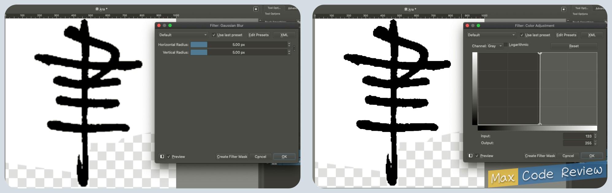 - 1:這一個步驟是可以讓線條平滑沒錯,相對也失去了細節,讓筆畫交叉的地方產生暈染的效果。