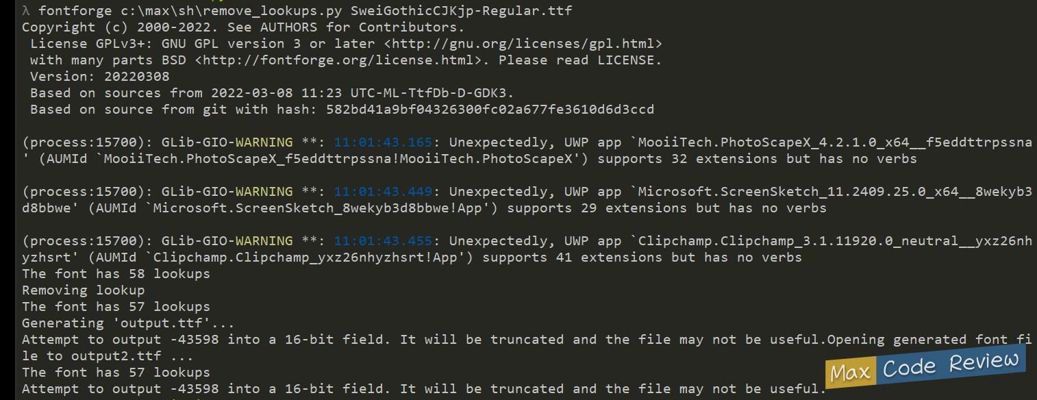 說明, 由於需要使用到 font forge library, 所以要透過 font forge 執行這一個 python script.